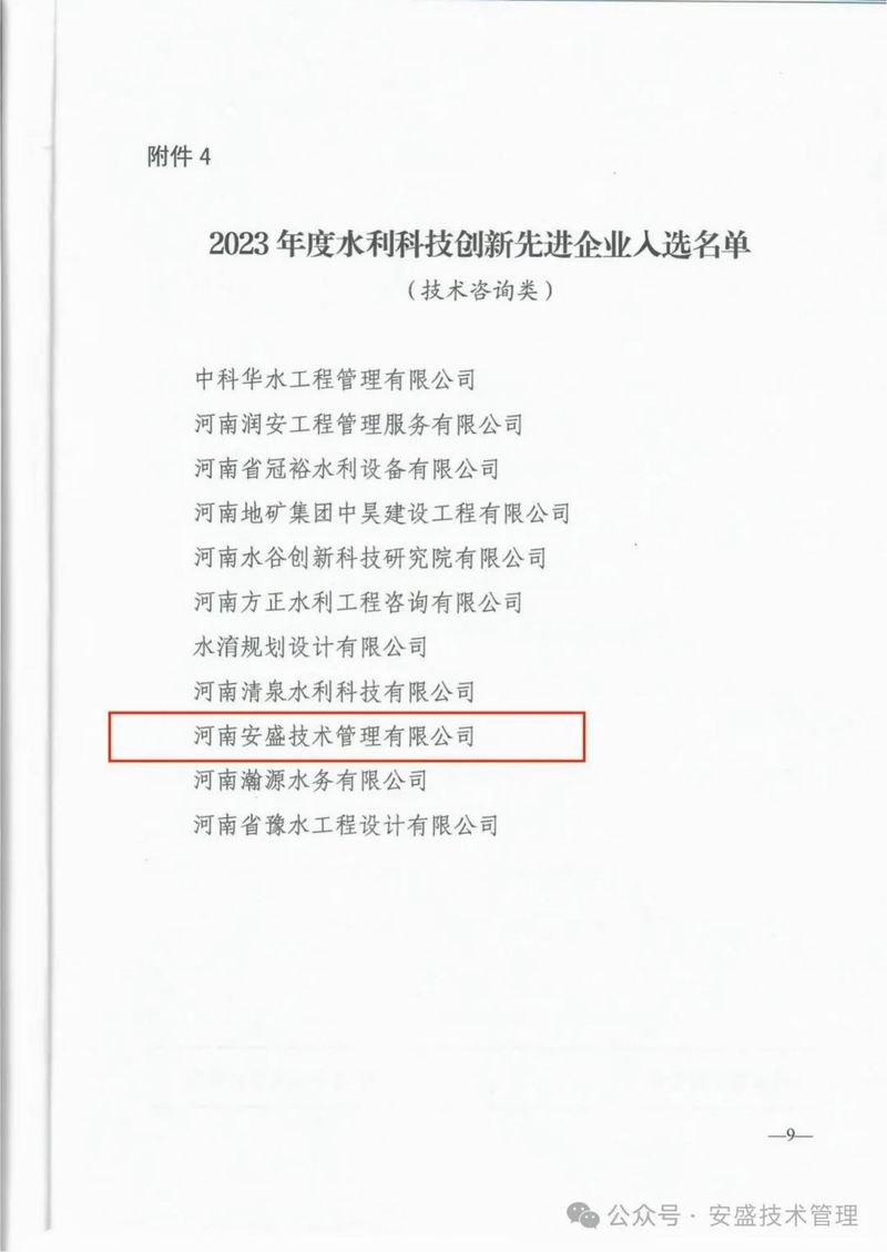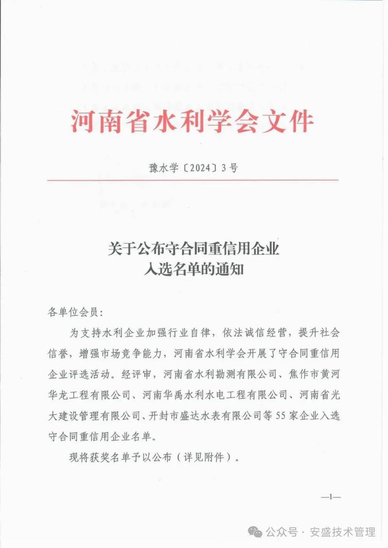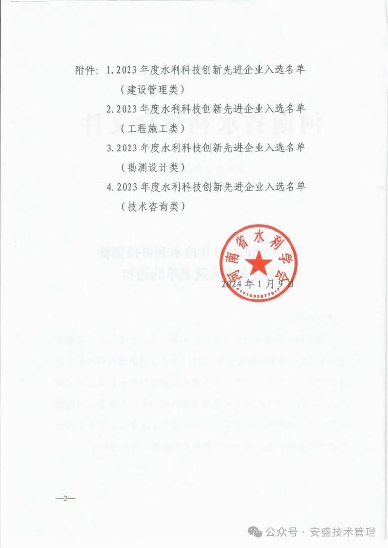 喜報|熱烈祝賀我司入選2023年度水利科技創新先進企業、守合同重信用企業