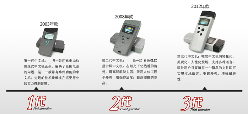 唯實(shí)互聯(lián)巡更中文機(jī)3代,鋅鋁合金電鍍外殼,雙色OLED顯示屏, 陽光下仍然清晰可見,巡邏導(dǎo)航:自動(dòng)提示下一巡檢地點(diǎn)名稱, 本機(jī)查看巡邏記錄、事件、巡邏人員、鬧鈴等。